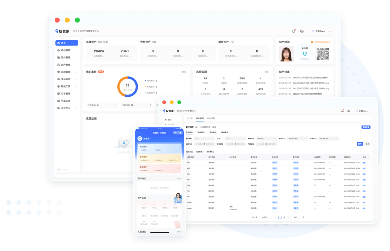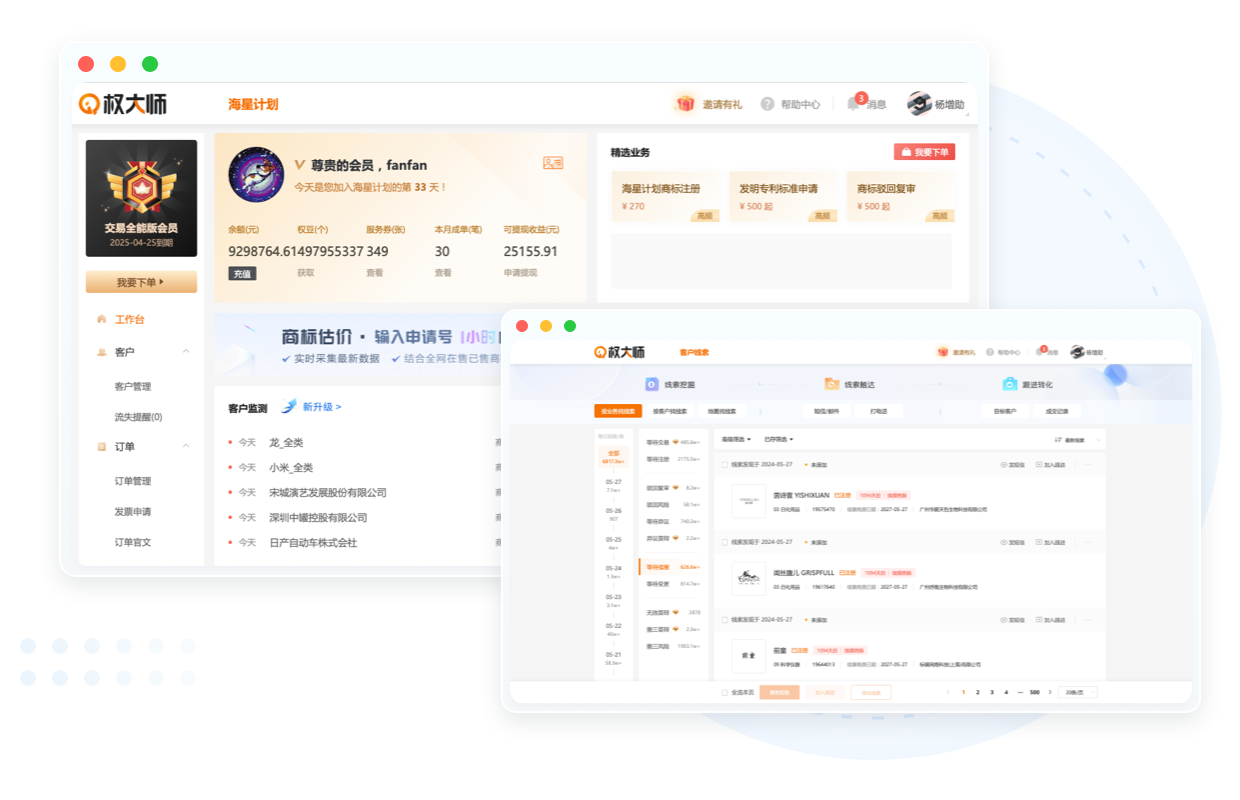 全套智能化知产服务工具,全面提升客户开发和服务效率;